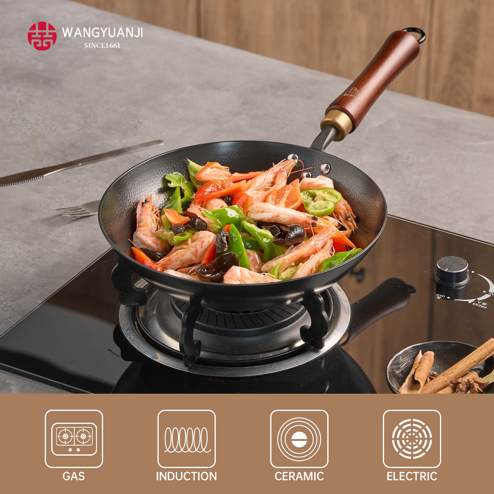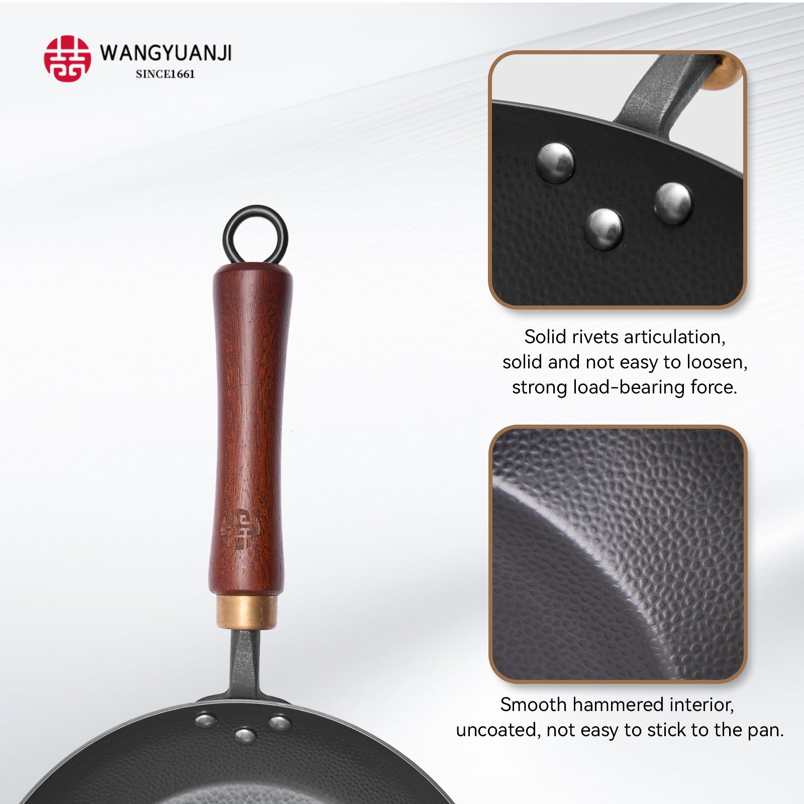 Traditional Hand-Hammered Craft – Each pan is individually forged and hammered by skilled WANGYUANJI artisans, continuing a 100+ year legacy of Chinese ironwork.