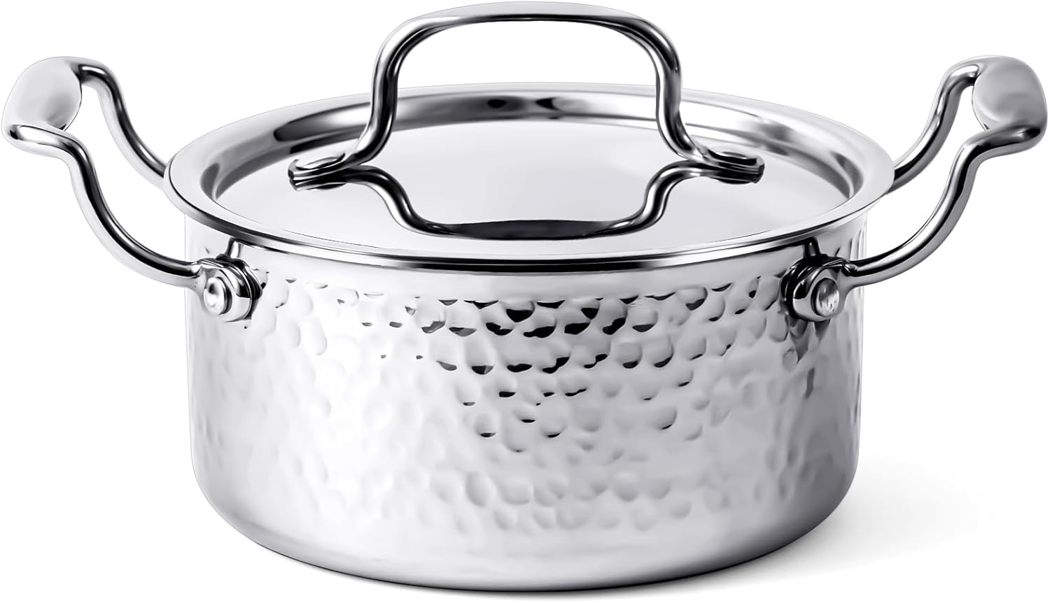 WANGYUANJI 1.8-Quart Stainless Steel Stock Pot with Lid, Small Soup/Sauce Pot, Tri-Ply Bottom, Induction Compatible, Dishwasher Safe, Hammered Finish