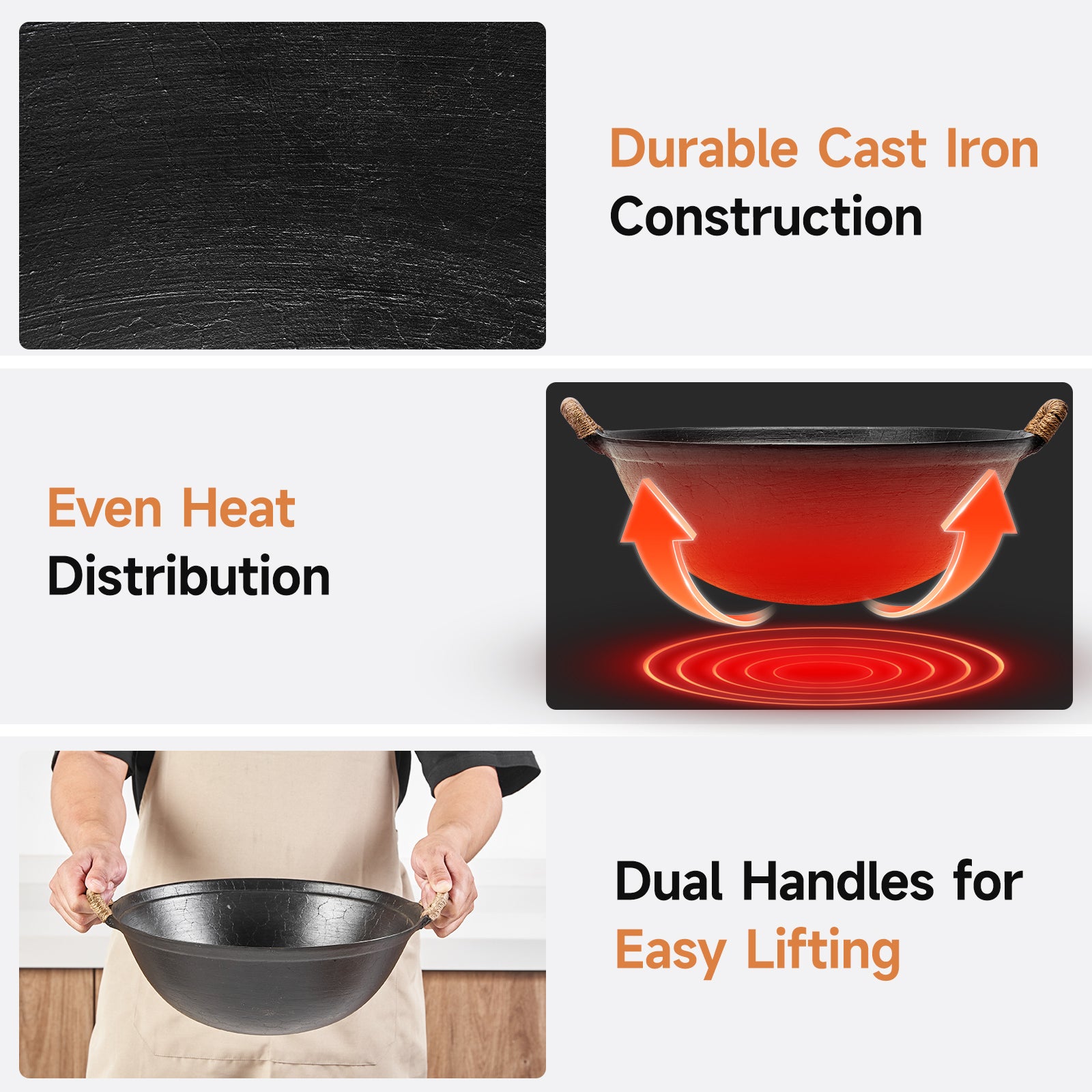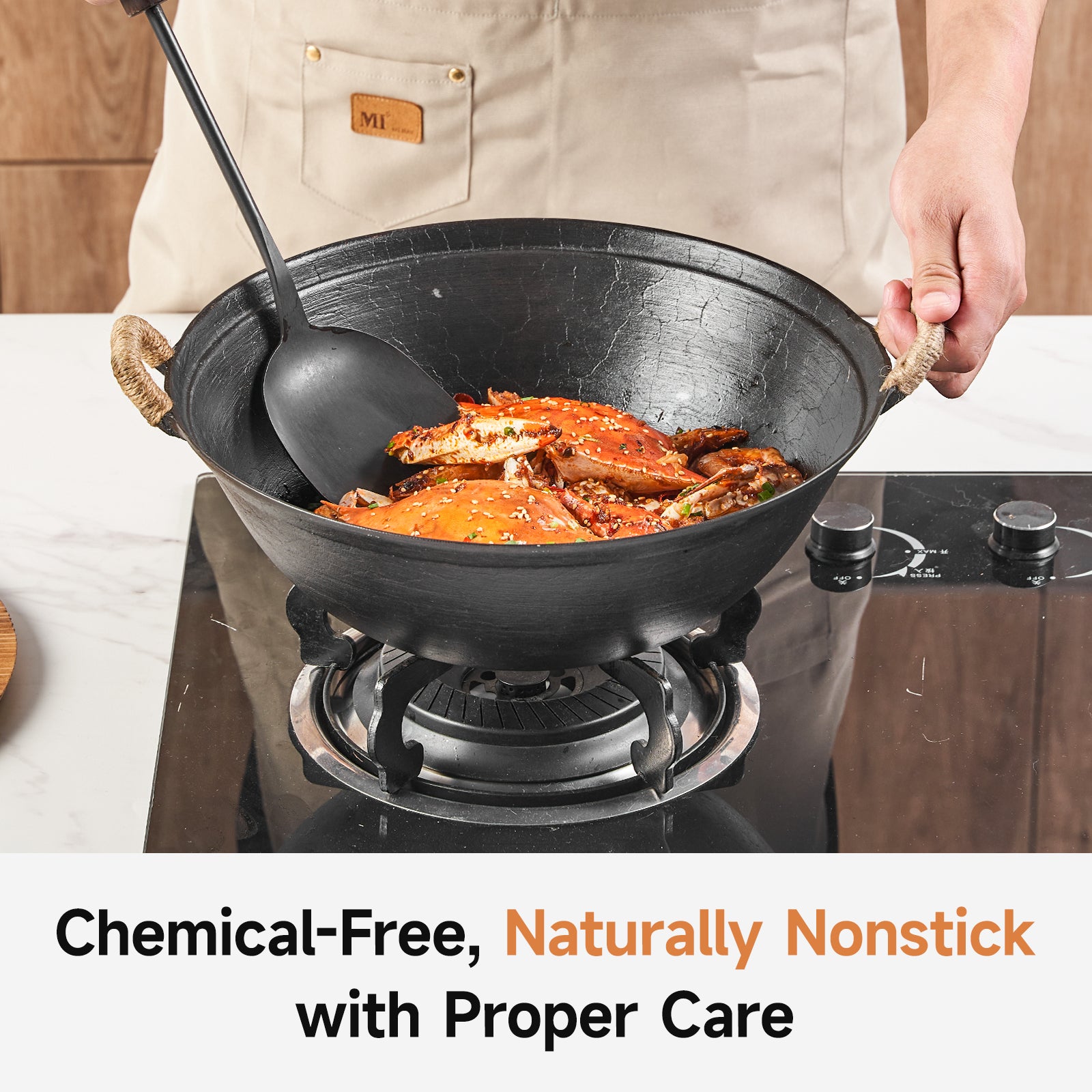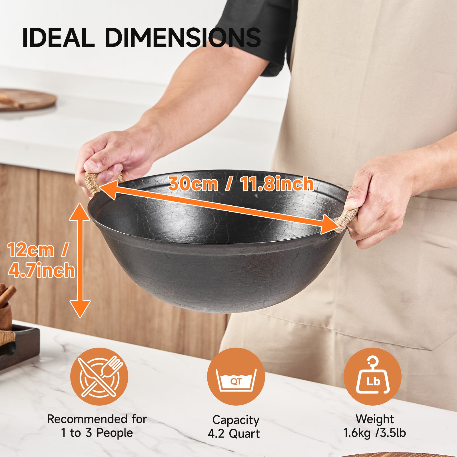 Experience the power of tradition with the WANGYUANJI 11.8 Inch Handmade Cast Iron Wok. Meticulously handcrafted using 37 artisan steps, this wok features a beautiful turtle shell texture — each piece truly one of a kind. Made from high-quality pure iron, it offers a naturally nonstick surface with proper seasoning, free from chemicals or synthetic coatings. The round-bottom design ensures optimal heat distribution, perfect for stir-frying, searing, or roasting over gas or open flame. Compact yet capable, it suits small households or individuals, with dual handles wrapped in anti-scald twine for safe and comfortable use. Whether you're cooking a quick meal or recreating a traditional recipe, this wok brings heritage and performance together in every dish.