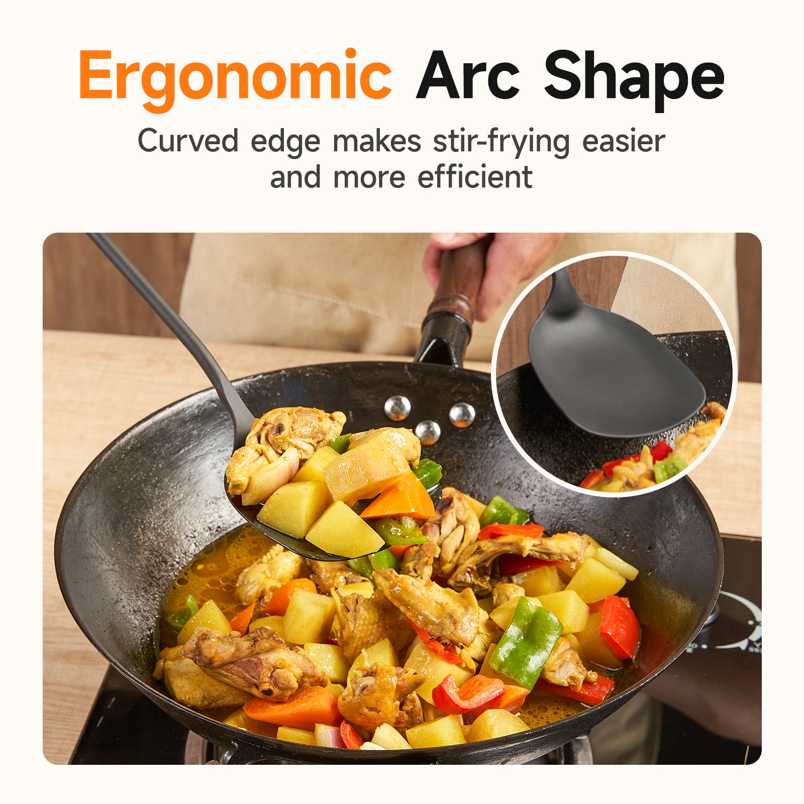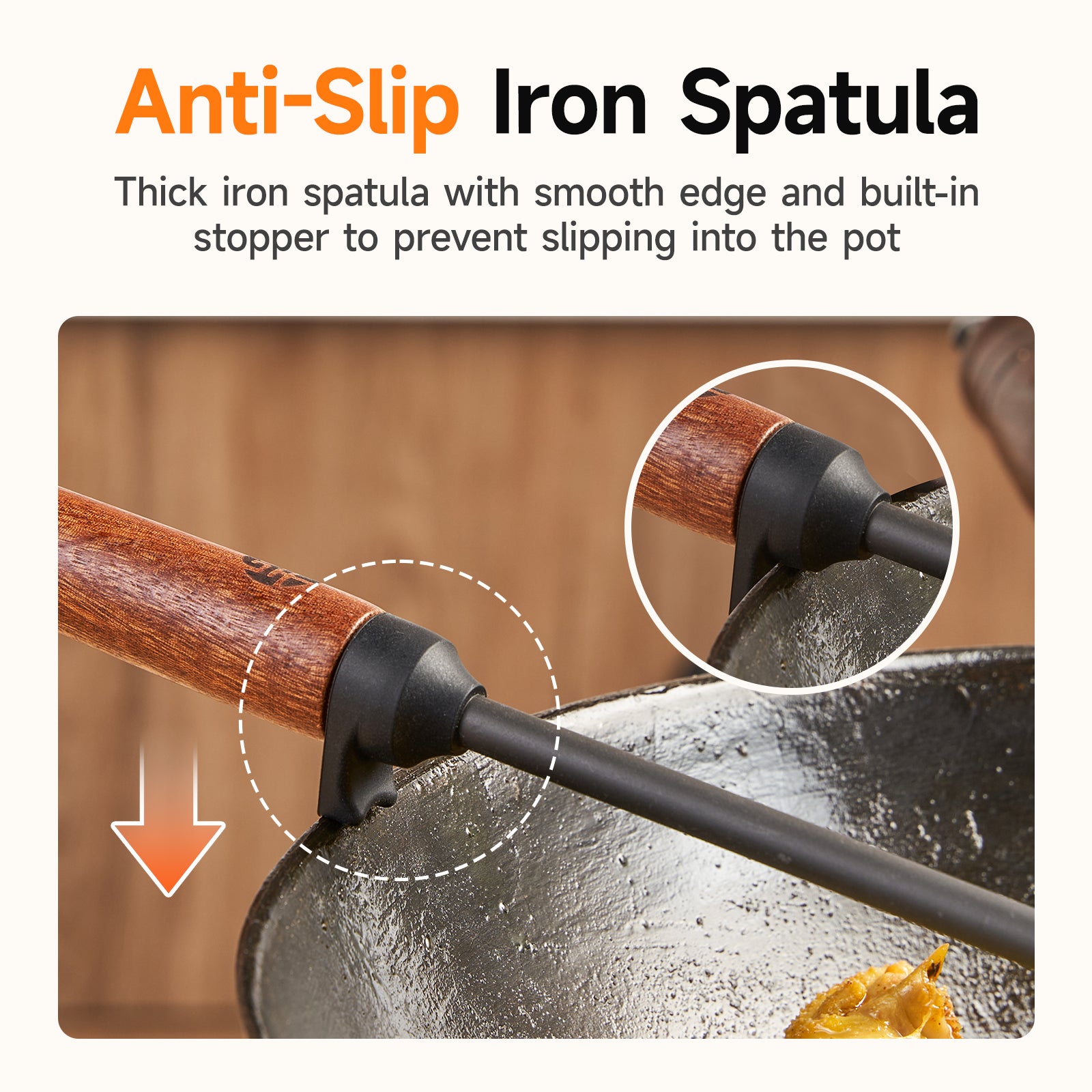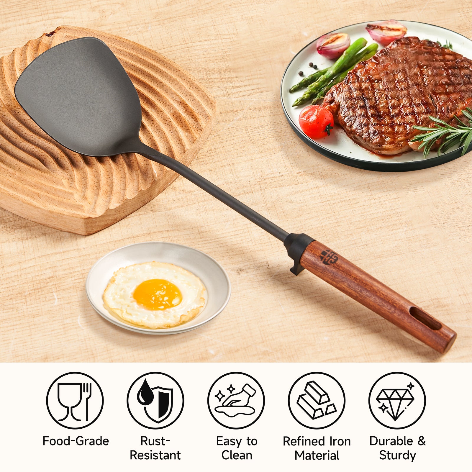 Bring authentic wok cooking to your kitchen with the WANGYUANJI 15.2-inch Chinese Iron Wok Spatula. Crafted from high-purity iron, this traditional spatula is built for durability and high-heat performance. The natural wooden handle provides a comfortable grip and better control, making stir-frying effortless. With a coatless design, it ensures safe, chemical-free cooking, while the nitriding-treated surface enhances strength and resists rust. Perfect for everyday use, simply wash by hand with warm water and mild soap to maintain its quality.