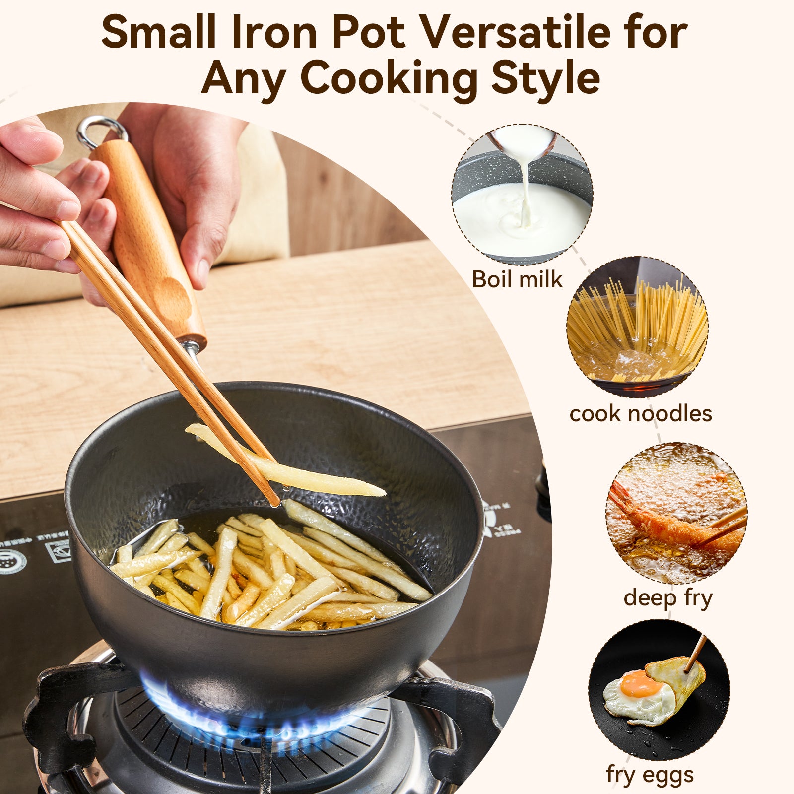 Elevate your everyday cooking with the WANGYUANJI 7.1 Inch Hammered Cast Iron Saucepan — a compact yet powerful kitchen essential. Hand-forged from pure cast iron, this saucepan ensures superior heat distribution and retention, making it ideal for simmering, boiling, or warming small portions. The transparent glass lid features a rounded knob handle, allowing you to check on your meal without lifting the lid. A removable beechwood handle provides safe handling and easy storage. With no chemical coating and wide stovetop compatibility, this saucepan delivers a timeless cooking experience for home chefs who appreciate tradition, durability, and style.