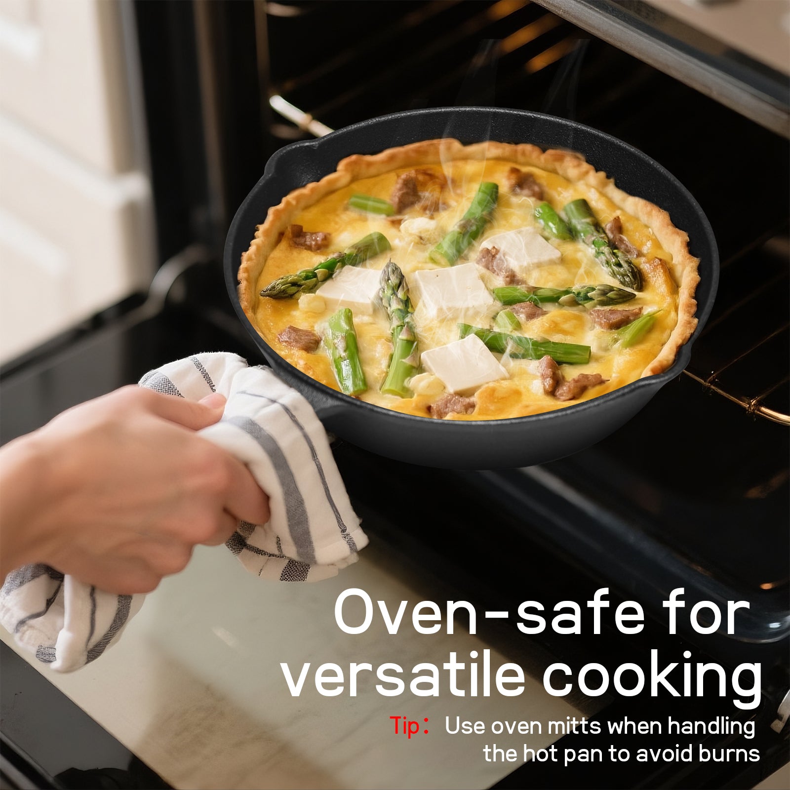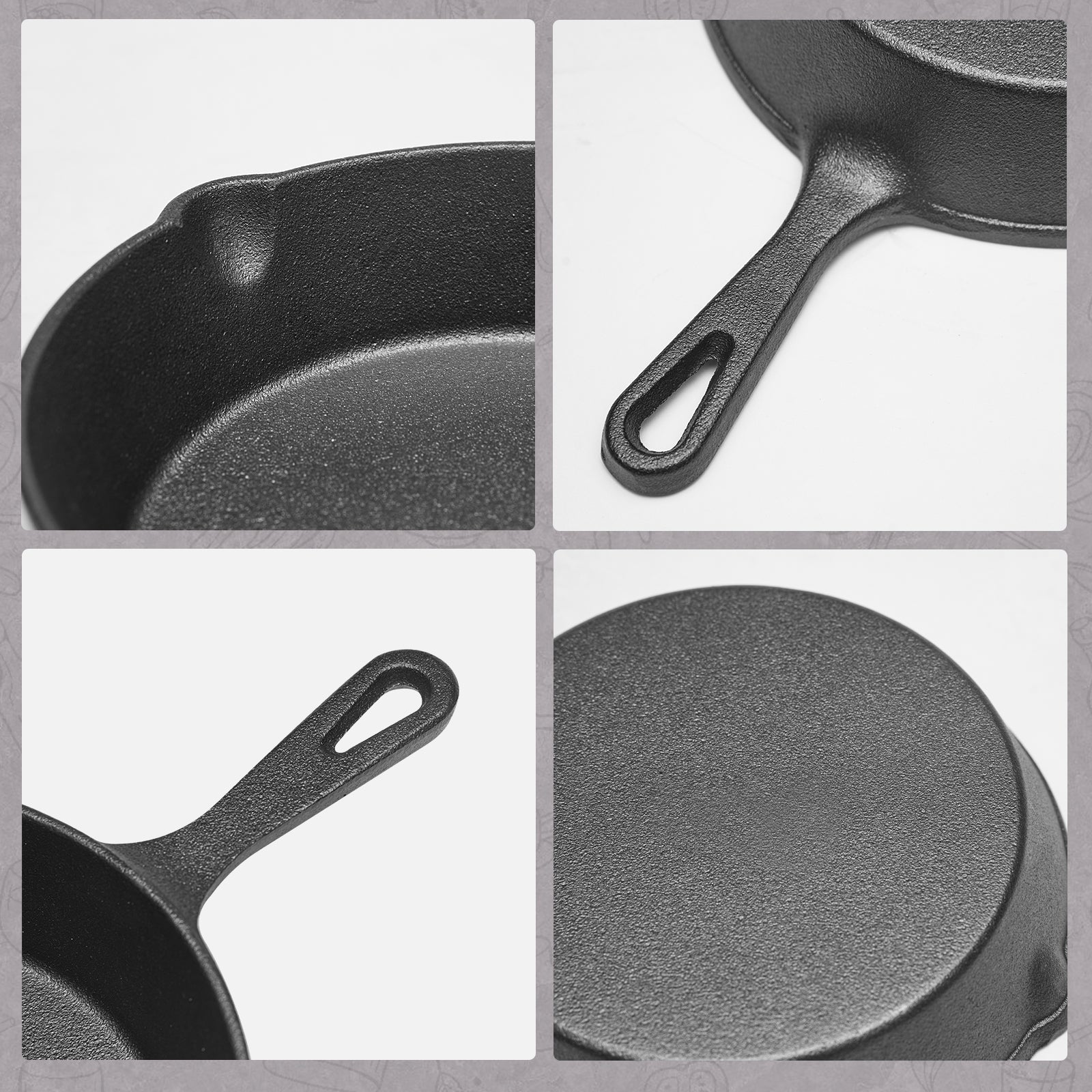 Crafted from heavy-duty cast iron, this 3-piece skillet set delivers exceptional heat retention and even cooking for all your favorite recipes. Perfectly suited for use on stovetops, ovens, grills, or campfires, these durable pans are pre-seasoned and ready to enhance flavors while providing a naturally nonstick surface. Designed with comfortable handles for easy handling and built to last for generations, this set is an essential addition to any kitchen or outdoor cooking setup. Easy to clean and maintain without any synthetic coatings, these cast iron skillets combine traditional craftsmanship with modern convenience.